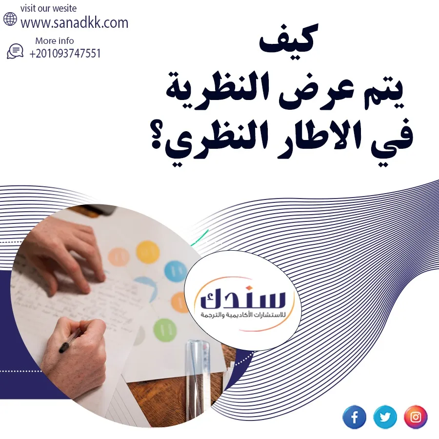 وفي النهاية، نستطيع القول بأن عرض النظرية في الإطار النظري يتطلب تنظيم المعلومات والمفاهيم بشكل منطقي وتسلسلي مع توثيق المصادر بدقة وربط النظرية بالمتغيرات والفرضيات أو أسئلة البحث، وفي هذا السياق، يمكن لشركة سندك للاستشارات الأكاديمية والترجمة أن تلعب دورًا مهمًا في دعم الباحثين من خلال تقديم خدمات البحث العلمي، وتنظيم المعلومات، بالإضافة إلى التعرف على كيف يتم عرض النظرية في الإطار النظري؛ مما يزيد من فرص قبول الدراسة في المجلات العلمية والمؤتمرات الأكاديمية؛ للتواصل واتساب.